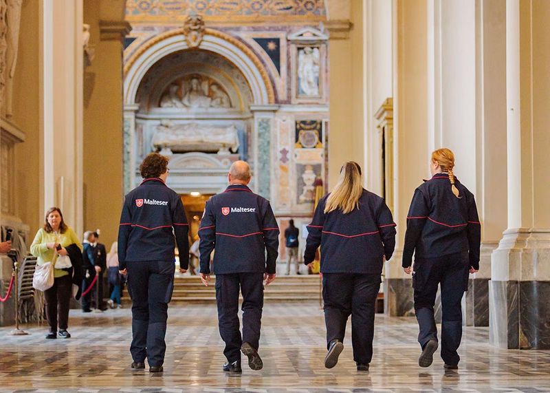 Es ist Heiliges Jahr in Rom. Das kommt – in der Regel – nur alle 25 Jahre vor und bedeutet, dass die Heiligen Pforten der Papstbasiliken geöffnet sind und sich Gläubige aus aller Welt auf den Weg machen und in die Ewige Stadt pilgern. Für viele von ihnen ist es die Chance auf ein spirituelles Erlebnis, die sie vielleicht nur einmal im Leben bekommen. Und all diese Pilgerinnen und Pilger sind gleichzeitig mit den vielen Menschen in der Stadt, die sie touristisch besuchen. Deshalb hat der Malteserorden im Auftrag des Vatikans die Aufgabe übernommen, einen täglich besetzten Sanitätsdienst an allen vier römischen Papstbasiliken zu betreiben, der im Notfall für all diese Menschen vor Ort da ist. Das ganze Jahr über.