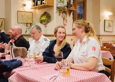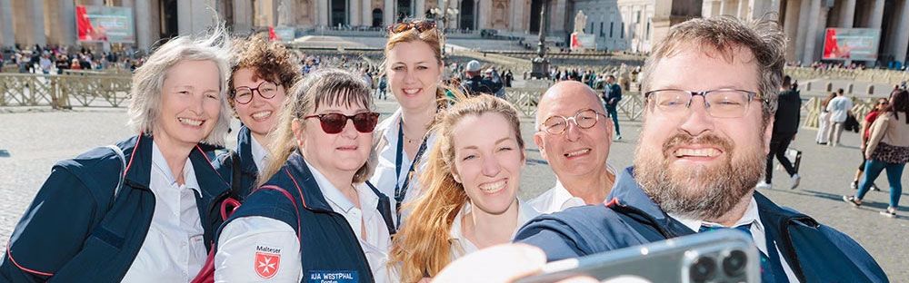 Am Nachmittag wird die Truppe abgelöst. Diözesanarzt Albert Bosserhoff hat einen Abend in dem Stammlokal der Paderborner Malteser organisiert. Dort, mitten in Rom, erwartet das Team tatsächlich ein Tisch, über dem ein Foto der Westfalen hängt. Bosserhoff war schon 2000 und 2016, als es ein außerordentliches Heiliges Jahr gab, mit dem Sanitätsdienst vor Ort. „Rom ist die Stadt, die mich einfach nicht loslässt, und der Sanitätsdienst hier ist noch mal ein ganz anderes Erlebnis als die große Romwallfahrt der Malteser. Wer kann schon von sich behaupten, auf dem Petersplatz einen Sanitätsdienst gemacht zu haben?“ Medizinisch verläuft die Woche des Teams aus Münster unauffällig, es sind eher kleinere Blessuren zu behandeln. Aber dafür schwärmen alle von den vielen Eindrücken und Begegnungen. Als Dankeschön gibt es für sie einen Empfang in der Magistralvilla des Malteserordens auf dem Aventin, wo ein Ordensmitglied sie als Regenschirm für die Pilger und Pilgerinnen beschreibt. Man ist froh, wenn man ihn nicht braucht. Wenn es aber regnet, ist man froh, dass er da ist.