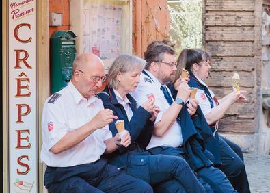 Für den Sanitätsdienst braucht es Malteser aus ganz Europa. Kristin Wälbers leitet das Team aus der Diözese Münster, das, verstärkt durch zwei Malteser aus Paderborn und eine Mitarbeiterin von Malteser International, eine Woche lang den Sanitätsdienst in den vier Basiliken besetzt. Dieses achtköpfige Team ist gleichzeitig mit Maltesern aus Slowenien, Belgien und Italien vor Ort – und trotz Sprachbarrieren verstehen sich alle prima. Einer der Gründe für Ortsseelsorger Markus Kemper aus Haltern am See, sich sofort für den Dienst zu melden: „Als Seelsorger war es für mich natürlich klar, dass ich dieses Großereignis der katholischen Kirche miterleben will, aber ich bin auch hier, weil ich neue Menschen kennenlernen will, die sich unter der Flagge der Malteser engagieren. Egal ob aus dem Ausland oder aus unserer Diözese. Das ist für mich immer ein großes Highlight in der Malteser Welt.“