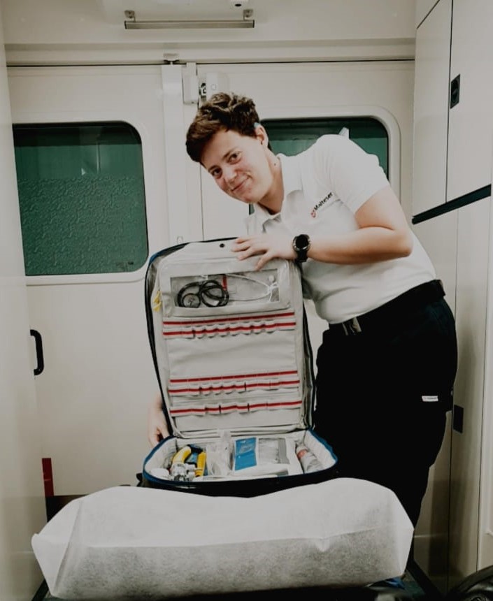 Alles fing an, während Julia ihr Abitur machte. Am Beruflichen Gymnasium der Paulinenpflege Winnenden, bei Stuttgart, wird die Ausbildung zum Rettungssanitäter beziehungsweise Rettungssanitäterin für Schülerinnen und Schüler mit Hörschaden oder Behinderung angeboten. Julia absolviert die Ausbildung und schnell wird für sie klar: Das will ich später hauptberuflich machen! Sie bewirbt sich um einen Ausbildungsplatz bei den Maltesern und ist seit August 2019 dabei.