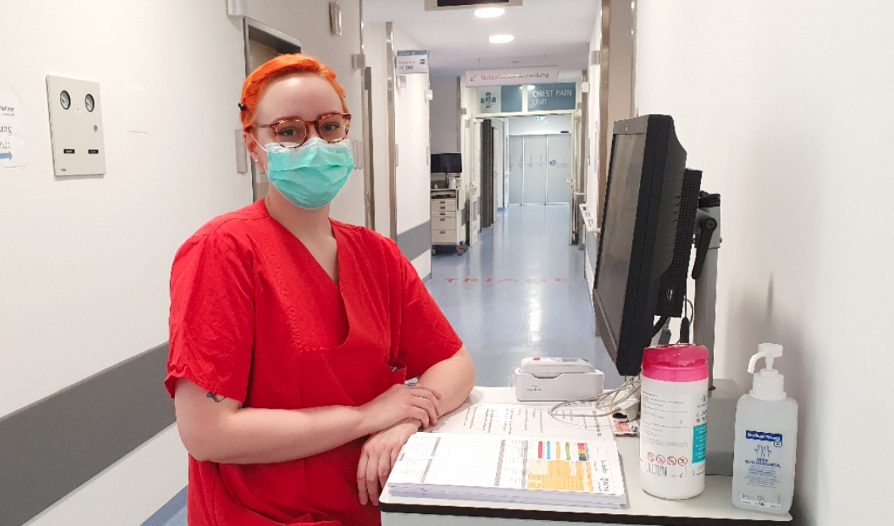„Wir sind gut vorbereitet, haben genug Schutzmaterial“, erzählt Lara-Sophie, „isolationspflichtige Patienten haben wir schon früher aufgenommen und behandelt. Insofern hat sich innerhalb unseres Teams, also jetzt speziell auf unserer Station, nicht ganz so viel geändert.“ Für die Patientinnen und Patienten hingegen sei die Situation belastender – vor allem ein Aufenthalt im Isolationszimmer sei stressig und löse Ängste aus. „Wir tragen Handschuhe, Masken, Schutzanzüge, der Patient ist alleine in seinem Raum – das ist natürlich eine beklemmende Situation für die Betroffenen, die wir als Pflegepersonal gut begleiten müssen.“