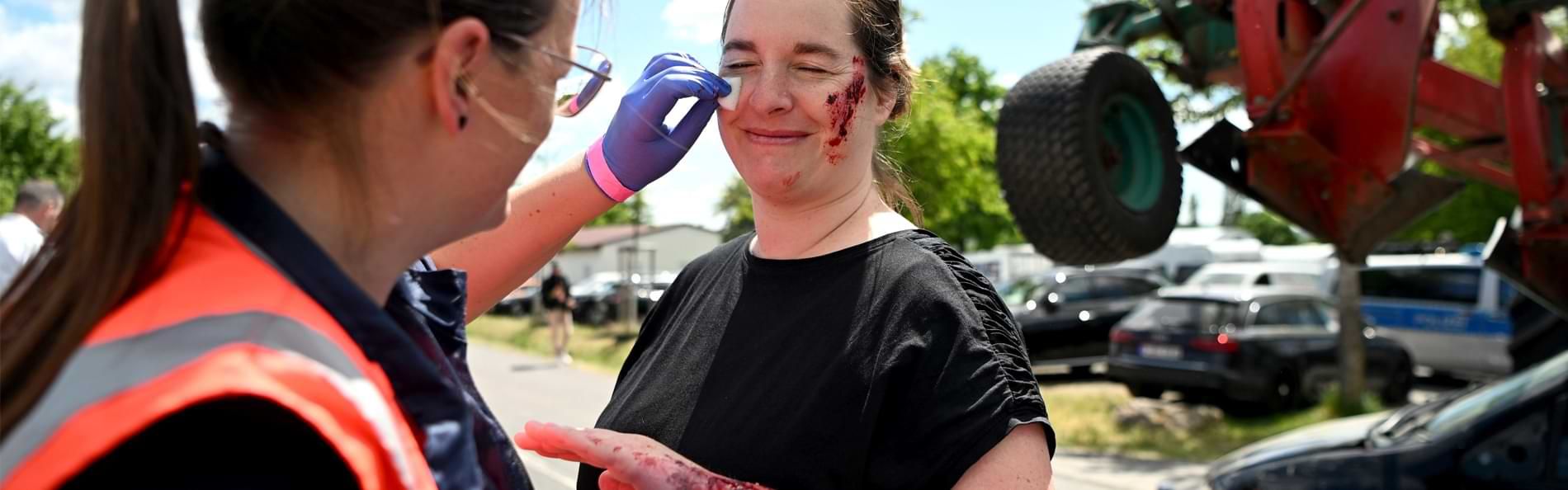 Verletzungen aus der Schminkbox: Ehrenamtliche sorgen bei Notfallübungen für eine realistische Unfalldarstellung