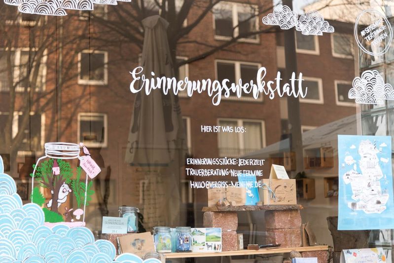 Der Tod ist ein heikles Thema. Obwohl er zum Leben dazugehört, wollen wir uns so wenig, wie möglich damit beschäftigen. Die Hamburgerin Anemone Zeim ist Trauerbegleiterin. In Coachings und Kreativitätsworkshops hilft sie Menschen, ihre Trauer zu verarbeiten und zwar so, wie es jeder Einzelne für sich braucht. Dafür kommen die Trauernden in Anemones Ladengeschäft Vergiss Mein Nie in der Nähe des Schanzenviertels. Wer hier eine verdunkelte Schaufensterscheibe in schwarzen, beigen oder grauen Farbtönen erwartet, liegt daneben. Alles ist bunt und hell. Hier gibt es nicht nur viel Raum für Trauer, sondern auch für Kreativität. In Workshops erstellen die Trauernden ihre ganz persönlichen Erinnerungsstücke und Anemone unterstützt sie dabei.