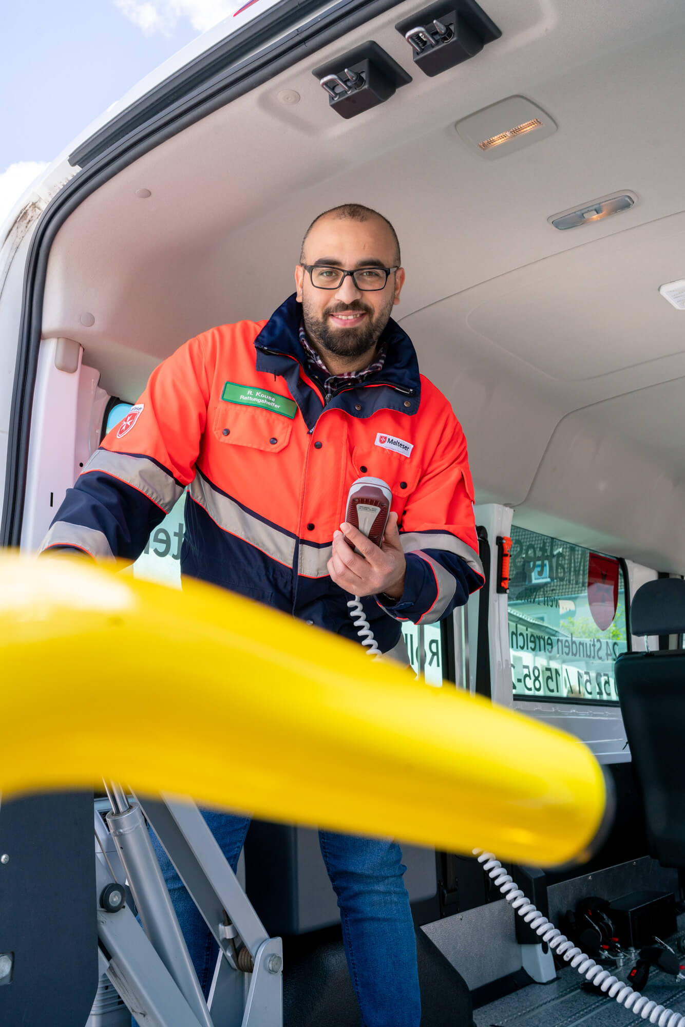 Vor der Chance steht ein Schicksalsschlag: Seine Frau erkrankt, muss operiert werden und für ihre Genesung mehrere Wochen im Krankenhaus verbringen. Über Krankentransport-fahrer bekommt das Paar Kontakt zu den Maltesern. „Die Aufgaben der Fahrer und ihre freundliche Art zu helfen haben mir sehr gut gefallen“, sagt Ribal Kousa. Heute arbeitet er mit den Helfern von einst jeden Tag zusammen. Denn Ribal Kousa zögerte damals nicht lange und bewarb sich mit Unterstützung des Jobcenters bei der Malteser-Dienststelle um einen Job. Mit Erfolg: „Am 15. August 2017 bin ich als ,Bufdi' gestartet“, erinnert er sich noch genau.