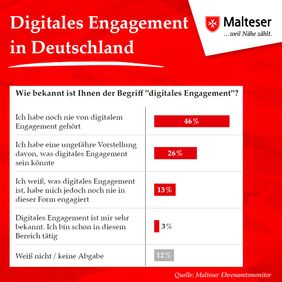 Erst drei Prozent der Befragten engagieren sich bereits digital. 46 Prozent haben dagegen noch nie von dieser Möglichkeit gehört.