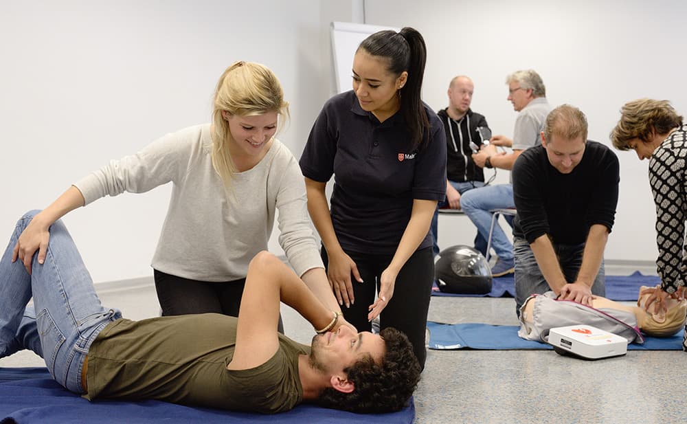 Nachdem du deine Grundausbildung erfolgreich abgeschlossen hast, wirst du zum Erste-Hilfe-Kursleiter und leitest selbstständig Erste-Hilfe-Kurse an. Du vermittelst die medizinischen Grundlagen anschaulich und praxisnah und stehst den Kursteilnehmenden mit Rat und Tat zur Seite. Die Kurse finden meistens am Wochenende statt und decken unterschiedliche Themen ab, von Sofortmaßnahmen am Unfallort über Pflege von Angehörigen bis hin zur Ersten Hilfe für Kinder.