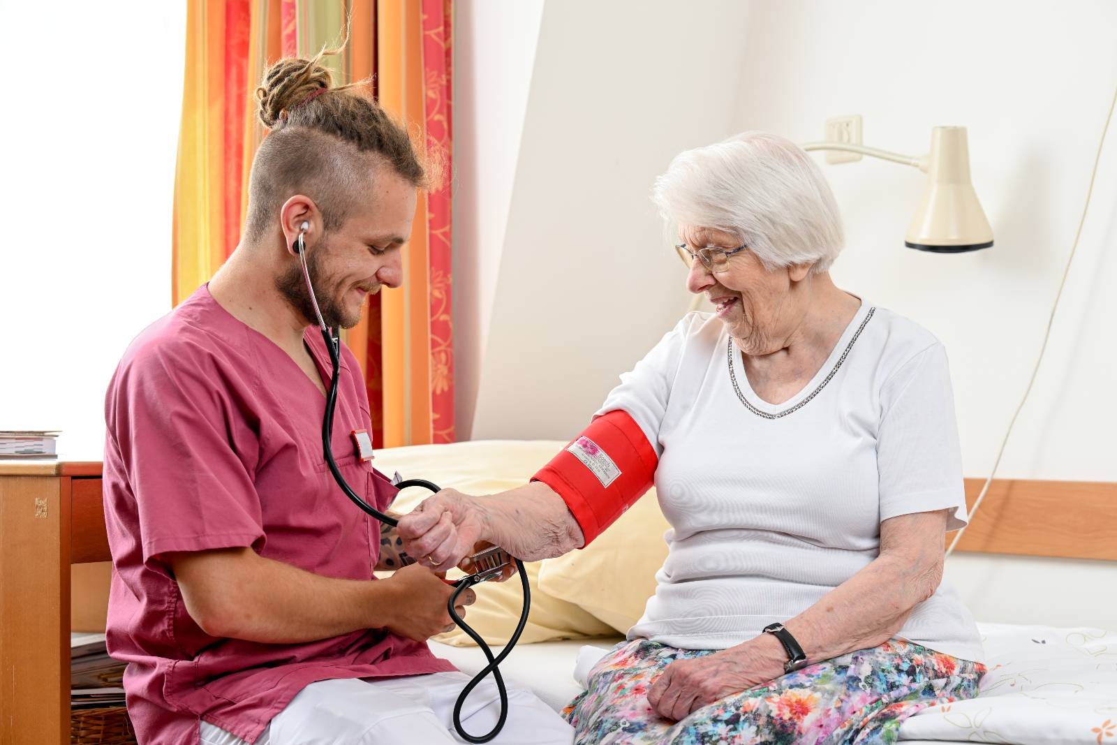 Als ausgebildete Pflegefachfrau oder Pflegefachmann kümmerst du dich in der Altenpflege um Bewohnerinnen und Bewohner in Altenheimen und Pflegeheimen. Bei den Maltesern schließt das die Möglichkeit ein, auch in spezialisierten Schwerpunktpflegebereichen zu arbeiten. Eine Altenpflegerin bzw. ein Altenpfleger übt aber nicht nur pflegerische Maßnahmen aus, sondern steht den pflegebedürftigen Personen auch intensiv mit Rat und Tat zur Seite und baut enge Beziehungen zu den Seniorinnen und Senioren auf. Erfahre mehr über dieses spannende und chancenreiche Berufsbild.