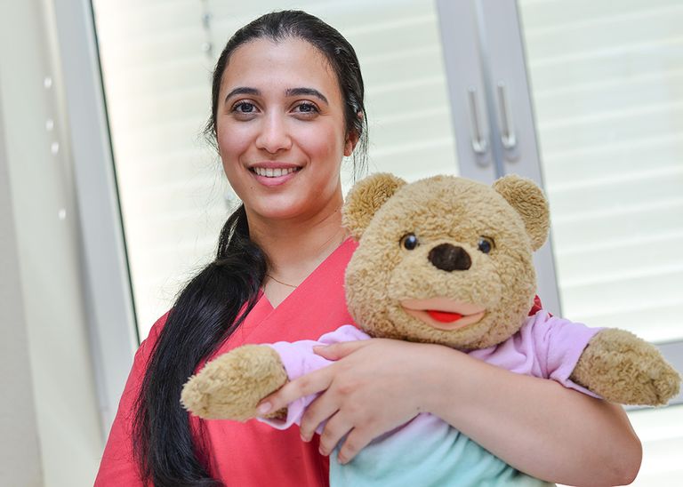 Die Auszubildende Hiba Rouini (28) verarztet im Malteser Waldkrankhaus St. Marien in Erlangen regelmäßig haarige Felle.