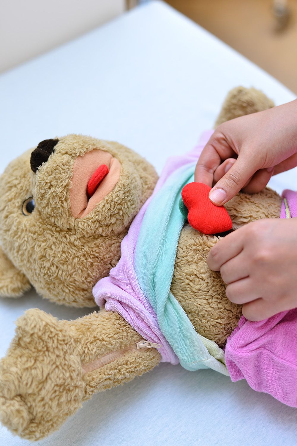 "Ich versorge Benny, der einen Verband am Bein braucht. Er ist vom Fahrrad gestürzt und hat sich verletzt, war jetzt aber sehr brav. Ein bisschen weinen musste er schon, weil es eben auch ein bisschen weh tat. Aber wir beiden haben uns während der Behandlung unterhalten und so langsam geht es ihm schon wieder besser.