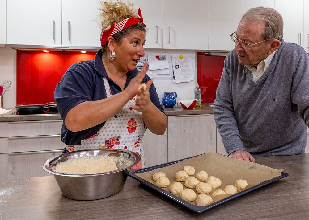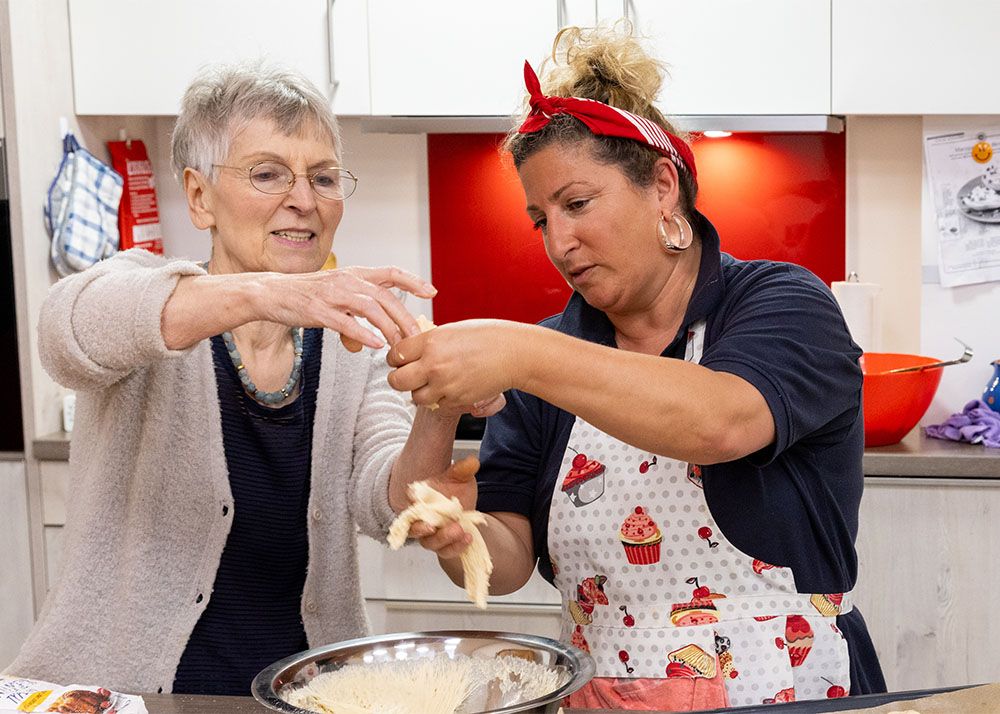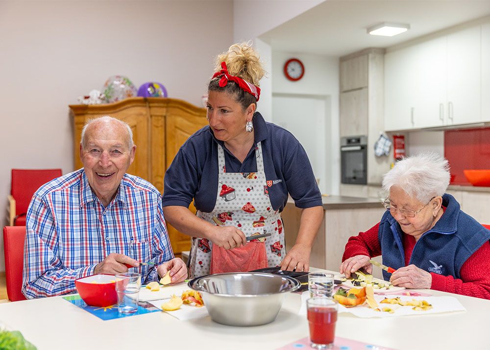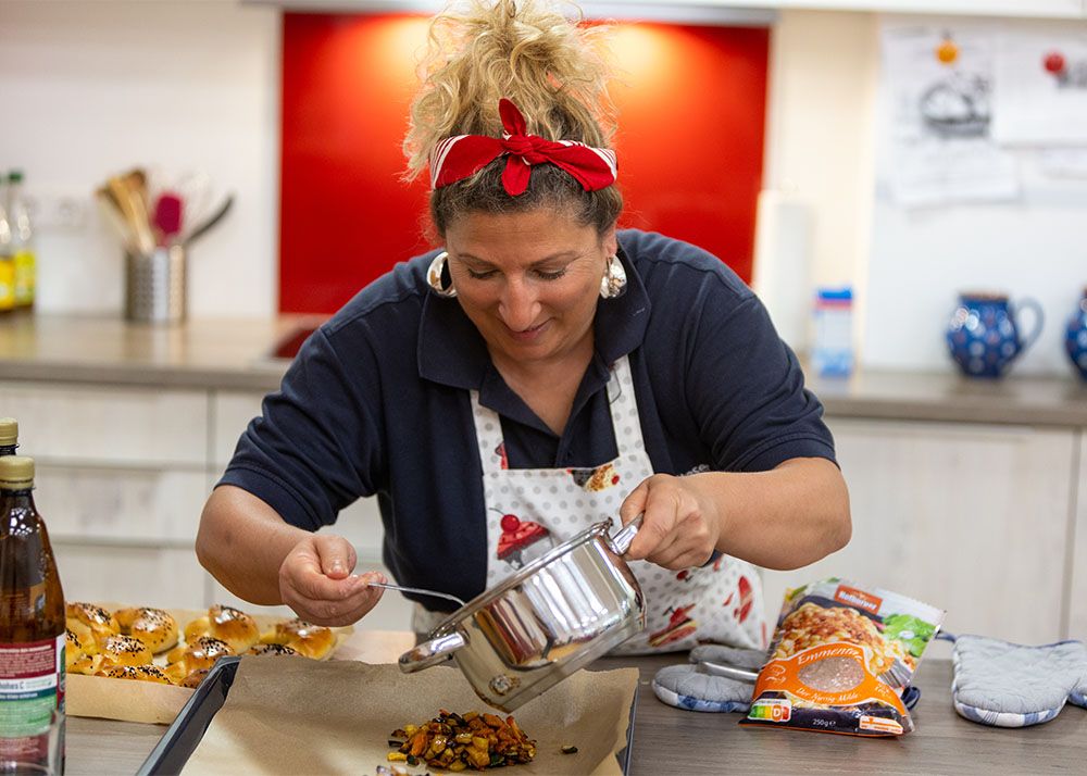 Beim Kochen und Backen in der großen Küche des Café Malta kommen an manchen Tagen für einige Gäste ungewöhnliche Zutaten zusammen: Kreuzkümmel zum Fleisch, Knoblauch, scharfe Paprika; Hefeteig gefüllt mit Lauch und Käse. Die sechs Damen und Herren der Gruppe an diesem Tag sind offen für Neues. Sie putzen und schneiden Gemüse, formen Teigtaschen - und essen dann gemeinsam am großen Tisch. „Wenn unsere Besucher das Gefühl haben, willkommen zu sein, freuen sie sich und geben so viel zurück“, sagt Handan Reiner. „Ich bin froh, dass ich im Team des Café Malta mitarbeiten kann.“