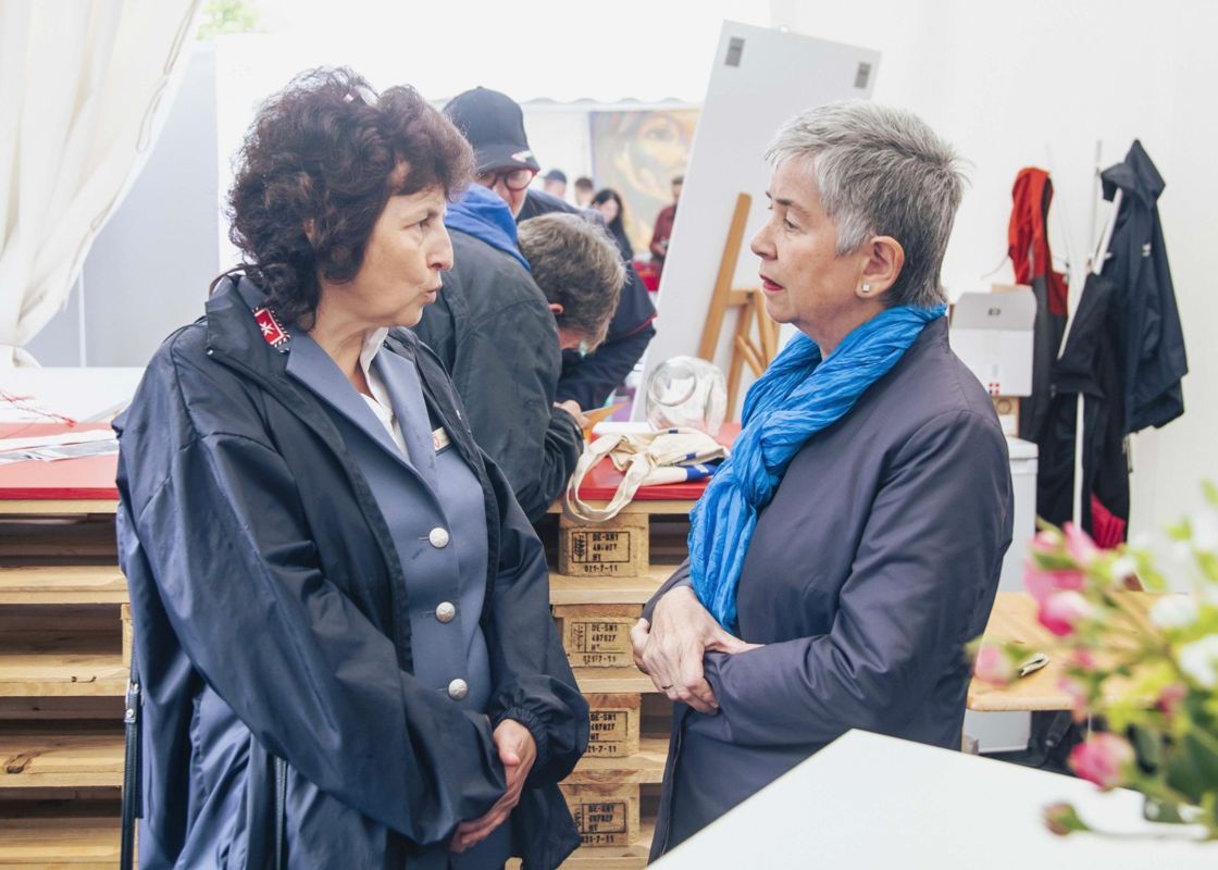Anke Brumm, Diözesangeschäftsführerin Magdeburg, im Gespräch mit Irme Stetter-Karp, die Präsidentin des Deutschen Katholikentags beziehungsweise des Zentralkomitees der deutschen Katholiken.