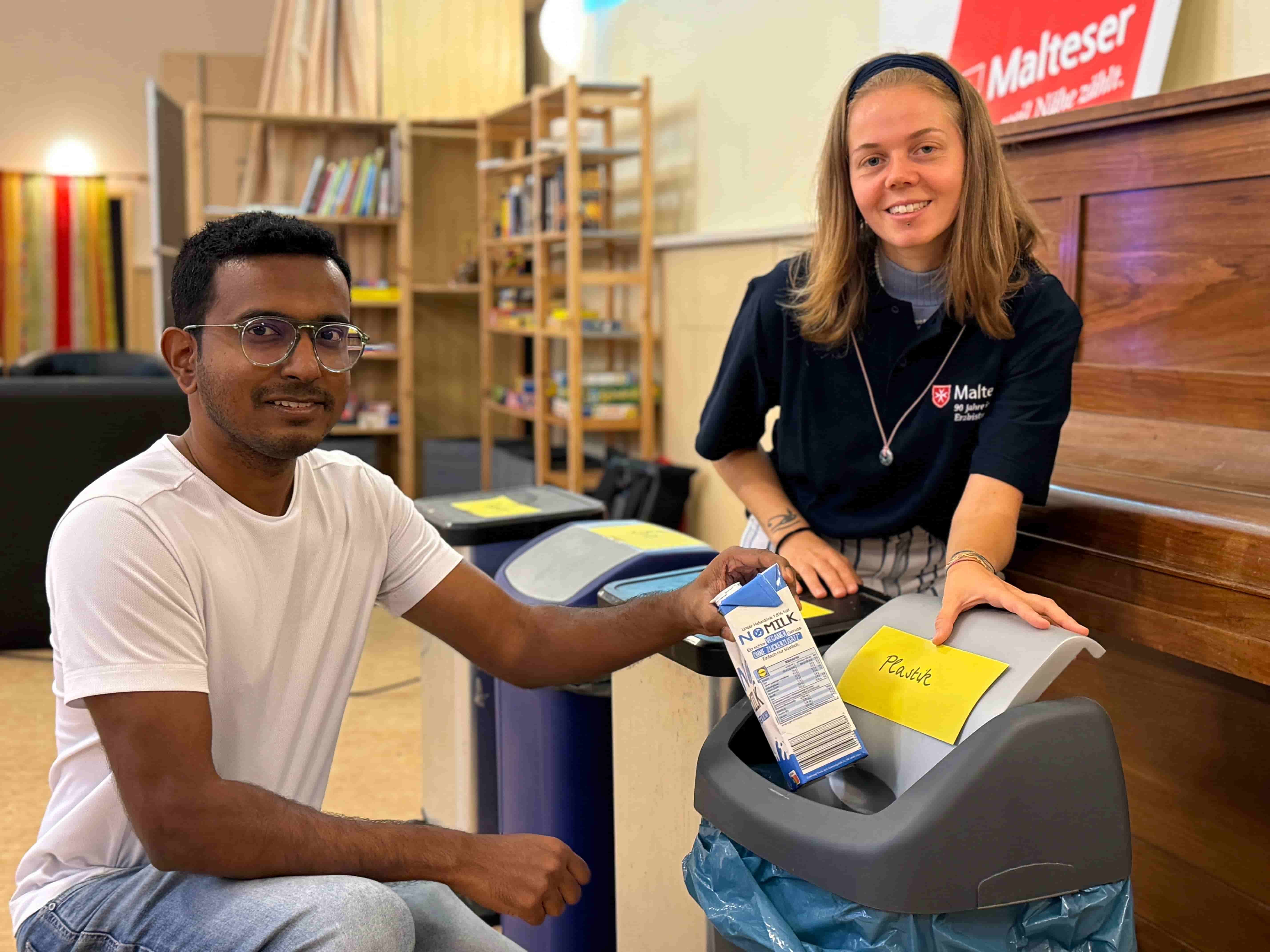 Beim Nachhaltigkeitstag des Malteser Integrationszentrums in Berlin drehte sich alles um Recycling, Mülltrennung und Upcycling. Menschen mit Flucht- und Migrationshintergrund lernten in Workshops, bei Vorträgen, einem Kleidertausch und einer Müllsammelaktion im Kiez, wie Müll in Deutschland getrennt wird. Dabei tauschten sie auch Erfahrungen aus ihren Herkunftsländern aus. Ziel: Integration durch gelebte Nachhaltigkeit.