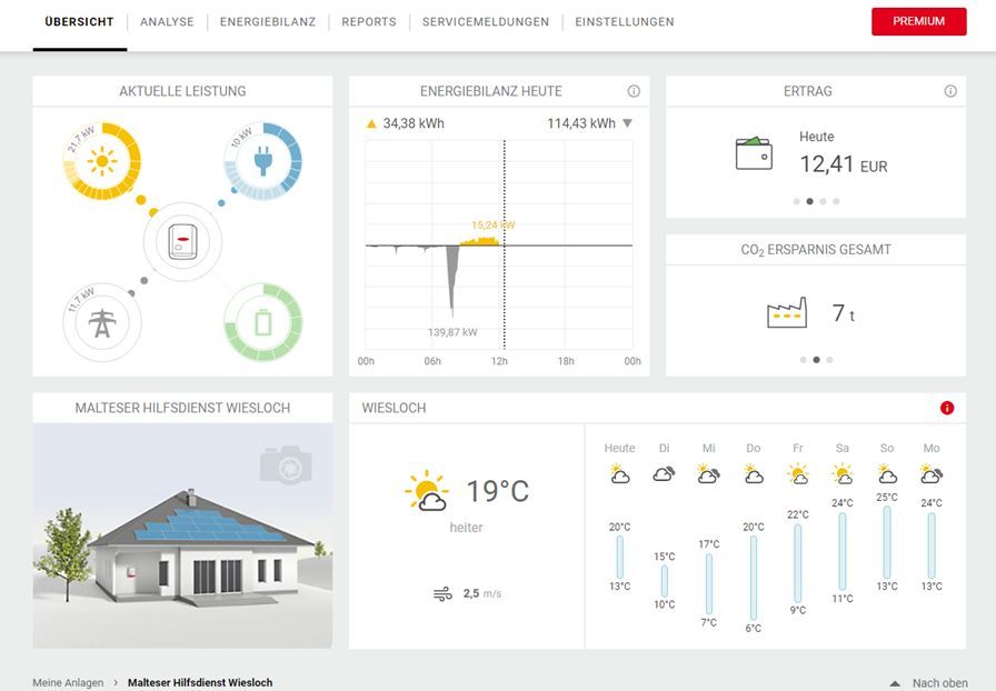 In Wiesloch haben die Malteser eine innovative Energieversorgungskette geschaffen: Die Photovoltaikanlage auf dem Dach der Dienststelle produziert an sonnigen Tagen ausreichend Strom, um sowohl die Mahlzeiten des Menüservices zuzubereiten als auch die Elektrofahrzeuge zu laden, die das Essen ausliefern. Sollte überschüssiger Strom übrigbleiben, wird dieser ins Stromnetz eingespeist. Auf diese Weise wird die nachhaltige Nutzung der Solarenergie maximiert.