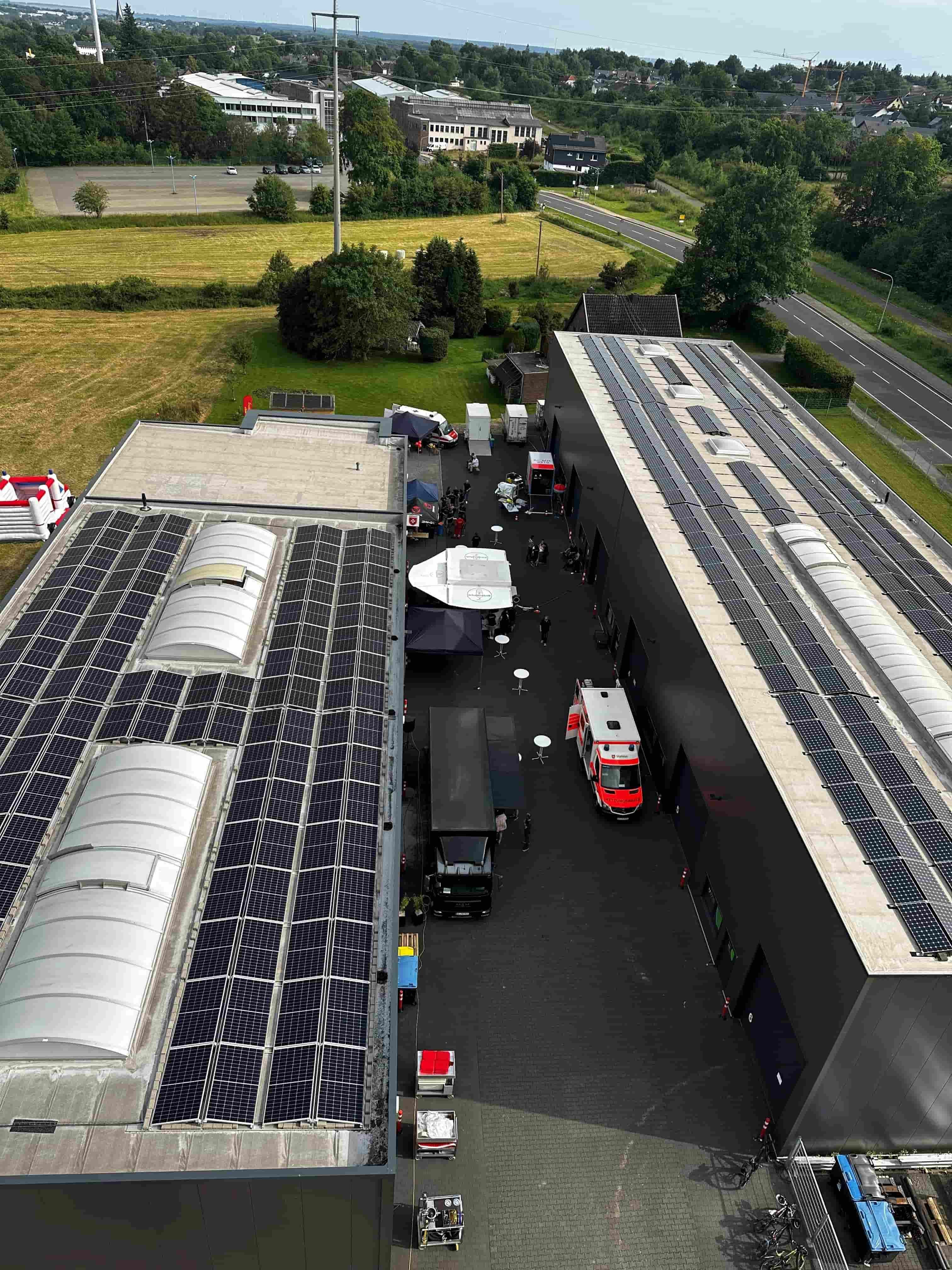 Die Malteser im Monschauer Land setzen auf innovative Klimaschutzlösungen. Eine Außenwand des Gebäudes wurde mit Solarpaneelen ausgestattet, um die bereits installierte Photovoltaikanlage auf dem Dach zu ergänzen. Diese Kombination unterstützt die Energieversorgung der Wärmepumpe und die Ladungserhaltung der Einsatzfahrzeuge. Technische und wirtschaftliche Effizienz dieser Lösung werden dabei stetig überprüft, um zukünftig noch stärker auf erneuerbare Energien setzen zu können.