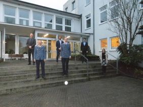 Von links: Frank Weber (bisheriger Gesellschaftervertreter Malteser), Dr. Frank Becker (bisheriger Geschäftsführer), Florian Pohl (neuer Gesellschaftervertreter Malteser), Gregor Schaaf-Schuchardt (neuer Geschäftsführer), Michael Gleissner (i.V. von Dr. Thomas Egginger, Gesellschaftervertreter Kliniken Nordoberpfalz AG) und Susanne Wagner, Leiterin Hospiz Sankt Felix.