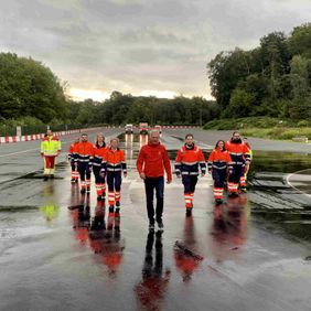 Der Leiter der Notfallvorsorge, Markus Bensmann, freute sich über das Sicherheitstraining, das von strömendem Regen begleitet wurde und die Übungsstrecke noch glatter machte: „Die Sicherheit im Straßenverkehr wird bei uns natürlich ganz groß geschrieben. Wir schulen unsere Mitarbeiter regelmäßig, nicht immer in so einem Rahmen wie heute mit einem prominenten Fahrer, wie Christian Danner. Wir haben eine Verantwortung gegenüber den Menschen, die in Not sind, aber auch gegenüber unseren Mitarbeitenden. Gerade während einer Einsatzfahrt mit Signal können auch schon mal unvorhergesehene Dinge passieren und darauf wollen wir mit den Schulungen eingehen, um die höchstmögliche Verkehrssicherheit zu gewährleisten.“
