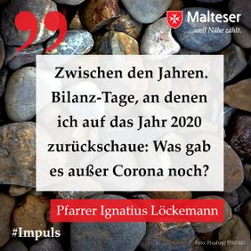 Wo bin ich gewesen? Wen habe ich getroffen? Was war besonders? Was kam dazu? Wer kam in meine Nähe? Was habe ich (dazu)gelernt? Was war schwer und schmerzhaft? Wen musste ich loslassen oder was verabschieden? Welche Grenze habe ich nicht überschreiten können oder dürfen? Was ist gewachsen, was weniger geworden? Wo gab es eine Sternstunde? Was war mein Highlight und wer mein Traummensch oder wer mir eine Heldin oder ein Held? Möglicherweise gibt es noch andere Richtungen oder Blickwinkel für meine Bilanz. Und dann: Fühlen. Genießen. Traurig sein. Zufrieden sein auch. Mut spüren. Ohnmacht aushalten. Kraft tanken. Und: Ausschau halten nach dem, was noch nicht da ist, aber kommen wird: das Jahr 2021. Irgendwie nur ein neues Kalenderblatt. Und doch viel mehr: 365 Möglichkeitstage. Gott spricht: Ich will dich segnen. Ein Segen sollst du sein. (Jahresthema der Malteser 2021 nach dem Buch Genesis Kapitel 12, Vers 2).