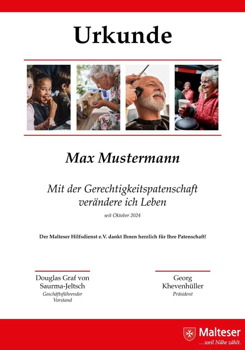 Eine Patenschaft bei den Maltesern steht für Ihr Engagement für mehr Gerechtigkeit. Mit Ihrer Unterstützung schenken Sie Menschen neue Chancen und setzen ein starkes Zeichen für eine gerechtere Welt. Vielen Dank, dass Sie an unserer Seite stehen!
