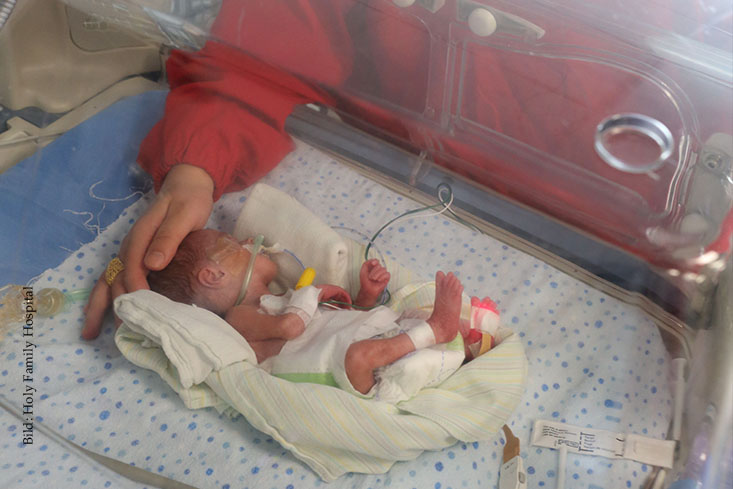 Seit der ersten Geburt im Jahr 1990 wurden mehr als 80.000 Babys in unserem Krankenhaus in Bethlehem geboren. Die Sterblichkeitsrate liegt bei 1,88 auf 1000 Geburten, das heißt auf europäischem und amerikanischem Standard. Das Krankenhaus betreut einen hohen Anteil an so genannten Risikogeburten, da der hohe medizinische Standard über die Grenzen Bethlehems hinaus bekannt ist.