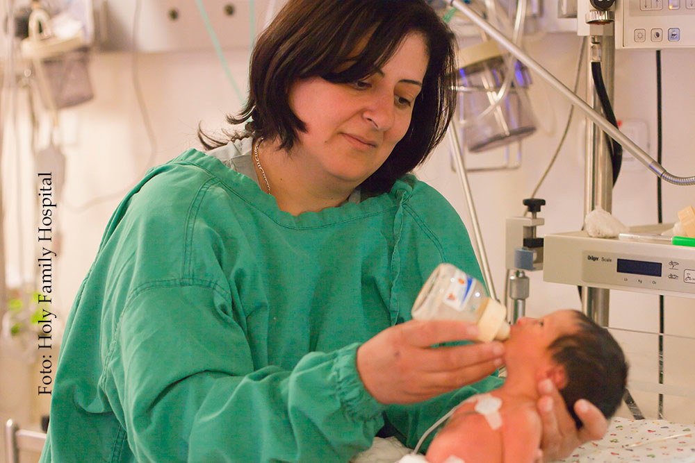 Naturgemäß steht eine Geburtenklinik jeden Tag vor großen Herausforderungen. Aktuell kommt erschwerend hinzu, dass durch das Geschehen in Gaza nicht nur das Krankenhaus im Tagesablauf mit seinen Patienten gefährdet ist, sondern auch alle Ärzte, Pfleger und das gesamte Personal persönlich betroffen ist, auch durch Straßensperrungen und ähnlichen Restriktionen. Die Menschen in der Region leiden an Hunger und viele werdende Mütter an Mangelernährung, weil durch das Ausbleiben von Pilgern und Touristen die Armut immer mehr zunimmt und die Lebensmittelpreise immer mehr steigen. Es ist eine schlimme Situation, niemand weiß, wann es bergauf geht. Umso wichtiger ist es, dass das Krankenhaus weiterhin ein Ort der Hoffnung bleibt.