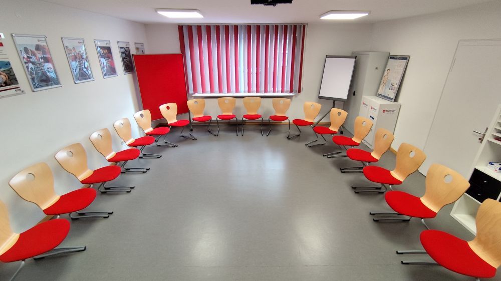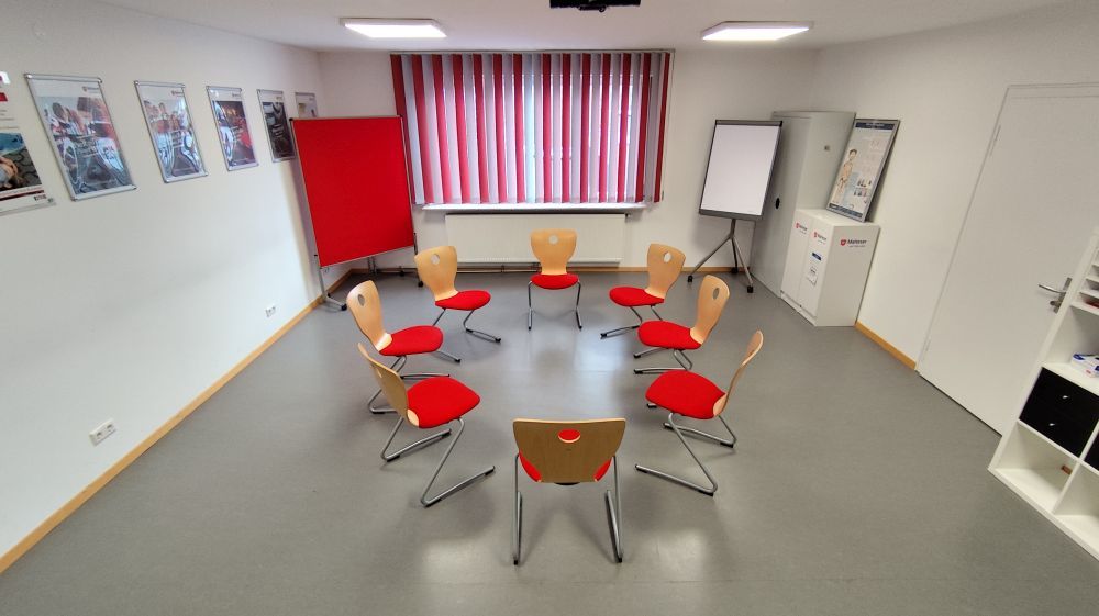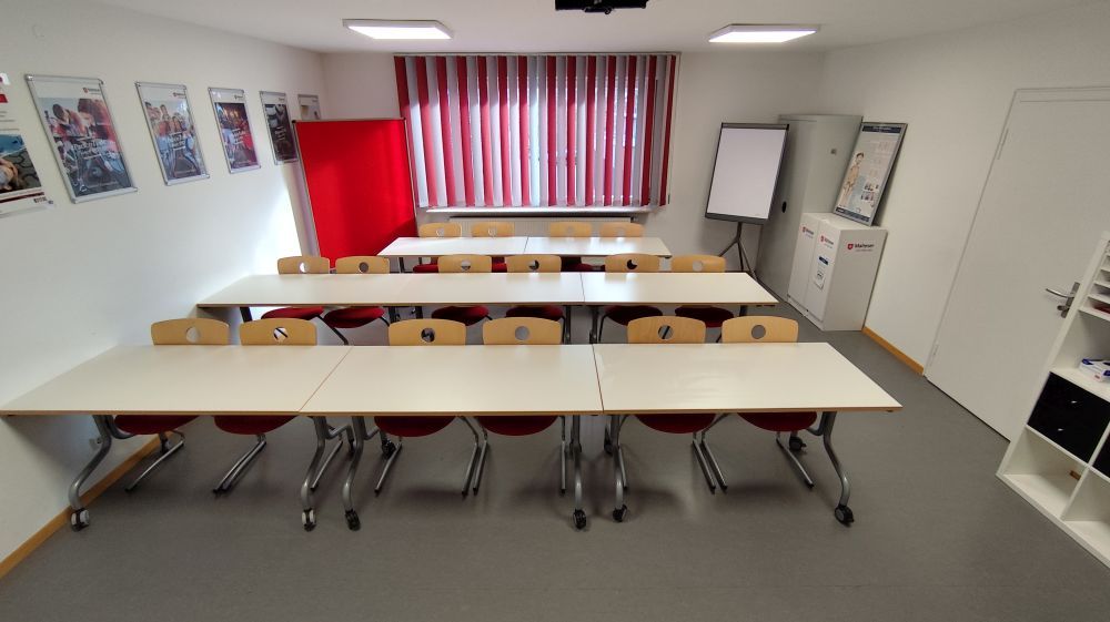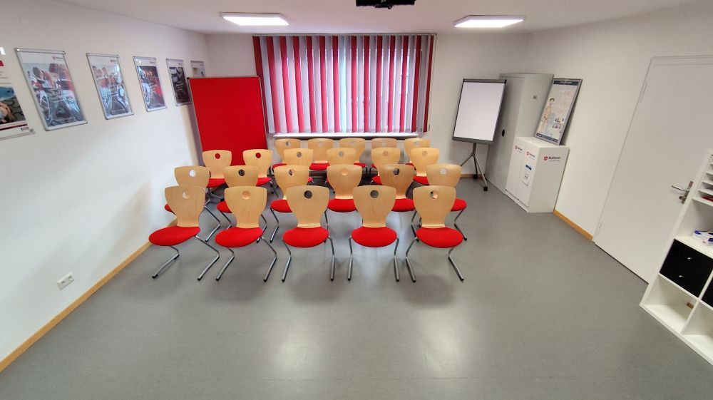 Der Schulungsraum befindet sich im 1. Obergeschoss und ist nicht barrierefrei erreichbar.