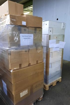 Über die Malteser der Stadtgliederung Paderborn werden Lagerkapazitäten zur Verfügung gestellt. Ehrenamtliche Helferinnen und Helfer unterstützen bei der Kommissionierung von gespendeten Gütern und bereiten Paletten für den Transport vor.