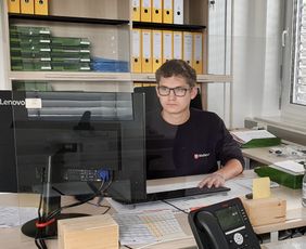 Die Aufregung an seinem ersten Ausbildungstag hielt sich bei Tizian Kreuter, 16 Jahre, tatsächlich in Grenzen. Vor seinem Ausbildungsstart hatte er schon ein Schulpraktikum und viele Stunden ehrenamtliche Arbeit in der Malteser Dienststelle absolviert. Neben den bereits bekannten Gesichtern begrüßte ihn auch Janine Amos, seine Ausbilderin. Sie war vor zehn Jahren die vorerst letzte Auszubildende in der Netphener Dienststelle, seinerzeit noch „Am Bernstein“, und freut sich, Tizian Kreuter nun durch die kommenden drei Jahre zu begleiten. Dass der ehemalige Realschüler bei den Maltesern landet, war ursprünglich eine Notlösung, die sich für den jungen Mann als Glücksfall herausstellte. In seinem eigentlichen Wunschberuf als Bestatter fand er kein Schulpraktikum und absolvierte es dann eben bei den Maltesern. Er schnupperte in die Bereiche Hausnotruf, Menüservice und Verwaltung hinein und relativ schnell war klar, dass dies eine Top-Alternative zum eigentlichen Berufsziel ist. Auch wenn er zur Dienststelle in Netphen jeden Tag eine beträchtliche Anfahrt mit Bus und Bahn von seinem Wohnort in Ferndorf in Kauf nehmen muss. Das lässt ihm aktuell auch wenig Zeit für seine Hobbies, wie Gitarre lernen und shoppen gehen oder mit der vierjährigen Schwester zu spielen.