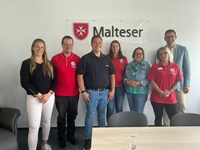 Um die Angebote in Netphen einmal hautnah kennenzulernen, waren die AfH-Teamleiterinnen und -leiter der Region in die Malteser Dienststelle eingeladen. Vor Ort machten sie sich ein Bild von der Speisenaufbereitung und der Logistik beim Menüservice sowie von der Funktionsweise des Hausnotrufs. Ein Rundgang und ein gemeinsames Probeessen mit Menüs aus dem aktuellen Speiseplan schlossen sich dem Info-Teil des Besuches an.