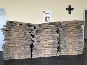 Insbesondere der achtköpfige „Arbeitskreis Umzug“ hatte im Vorfeld des Umzugs ganze Arbeit geleistet und die beiden Umzugswochenenden akribisch geplant. Viele Entscheidungen galt es zu treffen: was man in den nächsten Jahren wohl nicht benötigen wird und einlagern könnte oder wer in welches Büro einziehen wird. Über 300 Umzugskartons wurden gepackt, 700 tiefgekühlte Essen des Menüservice unter Einhaltung der Kühlkette von einem ins andere Gebäude verbracht oder die Stellplätze der 19 Dienstfahrzeuge von Rettungsdienst, Menüservice, Ausbildung und Hospizdienst verteilt. Die größte logistische Herausforderung aber sei gewesen, das alles bei „laufendem Betrieb zu bewerkstelligen“, so Dienststellenleiterin Brückner und nennt ein Beispiel: „Am Samstag haben wir die Menüs für unsere Kunden noch von der alten Dienststelle ausgeliefert, danach die Menüs und die Heißluftöfen umgezogen und am Sonntag funktionierte alles reibungslos vom neuen Standort aus.“ Nach zwei arbeitsreichen Wochenenden sind nun alle Dienste und Mitarbeiterinnen und Mitarbeiter in den neuen Räumlichkeiten angekommen. „Dass wir quasi gegenüber eine neue – vorübergehende – Bleibe für uns alle gefunden haben, ist wirklich ein großer Glücksfall“, beschreibt Brückner die derzeitige Situation. Das erleichtere die tägliche Arbeit in den hauptamtlichen Diensten wie Menüservice, Hausnotruf oder auch Rettungsdienst genauso wie das traditionell gute Zusammenspiel mit dem Ehrenamt und all seinen Diensten wie Sanitätsdienst, Hospizarbeit oder die Therapiebegleithundeteams.