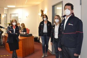 Aschaffenburg/Hösbach. Die ehrenamtliche Vizepräsidentin des Malteser Hilfsdienstes Deutschland Clementine Perlitt war am vergangenen Donnerstag zu Besuch im Impfzentrum in Hösbach und zeigte sich beeindruckt von der Leistung der über 130 Malteser Mitarbeiterinnen und Mitarbeiter, die täglich dort ihren Dienst tun. „Sie sind ein grandioses Team, und das liegt an jedem einzelnen von Ihnen. Hut ab vor Ihrem Engagement“, sagte sie am Ende ihres gut zweistündigen Besuches. Die Leiterinnen des Impfzentrums Anja Brückner und Yvonne Nebel sowie der Malteser Bezirksgeschäftsführer Rainer Kaufmann hatten die Vizepräsidentin durch das Impfzentrum geführt und ihr vom enormen Arbeitsaufwand sowie von der geforderten hohen Flexibilität im Alltag berichtet. „Die Zusammenarbeit mit dem Landratsamt und dem leitenden Arzt ist wunderbar“, betonten die beiden, was auch die Stimmung im Impfzentrum positiv beeinflusse. Da zahle sich die gute Vernetzung aus, die bereits vor der Pandemie mit den Behörden bestanden habe. Das bestätigte auch Frank Wissel vom Landratsamt Aschaffenburg und der Ärztliche Leiter Dr. Jürgen Luxem: „Wir sind sehr froh, dass gerade die Malteser den Job hier machen!“ Clementine Perlitt lobte diese Netzwerkarbeit im Vorfeld: „Das Impfzentrum Aschaffenburg ist ein gutes Beispiel dafür, dass, wenn man lösungsorientiert arbeitet, sich persönlich einbringt und einander wertschätzend begegnet, immer etwas Gutes bei rauskommt, auch wenn die Lage schwierig ist.“ In Aschaffenburg wehe ein Malteser Geist im besten Sinne, so die Malteser Vizepräsidentin. Sie bedankte sich für alle Anstrengungen und bat die Malteser Aschaffenburg: „Erhalten Sie sich Ihren Humor und Ihre Einsatzfreude.