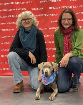 Nicht nur in dieser Bastelrunde, sondern während jeder Gruppenstunde ist noch eine dritte Helferin für die Kinder da: Konnys Hund Ayda, eine ausgebildete Besuchshündin. Ein junges, lebhaftes Tier, „aber Ayda spürt sehr schnell, wenn ein Kind gerade traurig ist, Unterstützung braucht. Dann kommt sie und legt ihm ihren Kopf auf den Schoß und schon hat das Kind einen anderen Fokus“, erklärt Konny Bernreuther. Ein Hund begegne Menschen ohne jede Wertung, das sei wichtig in der Trauerarbeit, sagt Regina Kiefer. Und: „Fell kraulen kann auch sehr tröstlich sein.“