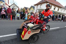 Bei den Karnevalszügen in Bad Honnef und Aegidienberg präsentierten die Honnefer Malteser wieder den Neuzugang in ihrem Fuhrpark: Ein Erstversorgungstrupp war wieder mit der Fahrrad-Rikscha unterwegs. Das dreiräderige Gefährt kann bis zu zwei Passagiere in seiner vorderen Sitzschale aufnehmen, die vom „Piloten“ dahinter kutschiert werden. Dank Elektrounterstützung sind auch längere Strecken und Steigungen kein Problem für das Fahrzeug. Die Malteser bauen den Rikscha-Fahrdienst auf, um Menschen, die selbst nicht mehr mit dem Fahrrad fahren können, ein „fahrradartiges“ Erlebnis zu ermöglichen. „Mit der Beteiligung in den Karnevalszügen wollen wir weitere Ehrenamtliche für den neuen Dienst gewinnen, damit in Zukunft noch mehr Menschen in den Genuss eines Rikscha-Fahrerlebnisses kommen“, sagt Rikscha-Dienstleiter Andreas Archut, bei dem Interessierte sich melden können (Infos anfordern unter rikscha.badhonnef@malteser.org).