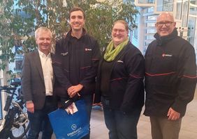 Die Fahrradpendler lagen auch in diesem Jahr bei der Mitmachaktion Stadtradeln ganz weit vorne. Leonard Heinrichs aber schaffte es sogar ganz nach oben aufs Treppchen: Dafür erhielt er jetzt von Bürgermeister Otto Neuhoff im Rathaus eine persönliche Gratulation und eine Präsenttasche überreicht. Malteser Stadtbeauftragte Carina Frings und ihr Stellvertreter Prof. Dr. Andreas Archut gratulierten. „Wow, Fahrradwerkzeug!“ freute sich Leonard beim ersten Blick in die geschenkte Tasche. „Das fehlte mir noch!“