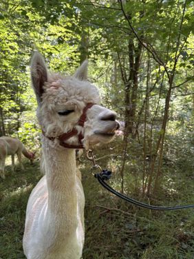Alpakas sind sanfte und neugierige Tiere, die durch ihre ruhige Art eine besondere Atmosphäre schaffen. Sie sind nicht nur liebenswerte Begleiter, sondern auch wunderbare Unterstützer in Trauerprozessen. Während der Wanderung konnten die Kinder die Tiere hautnah erleben und auch noch so manch spannende Information über Bambi, Toni, Frodo, Albert, Shaggy, Baby und Moritz lernen.