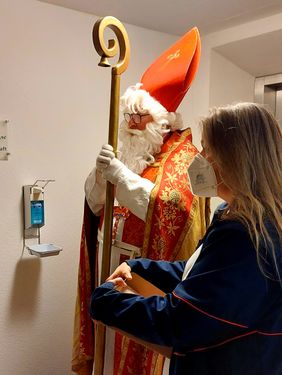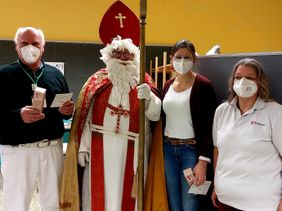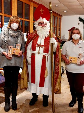 „Die Mitarbeiterinnen und Mitarbeiter in den Pflegeeinrichtungen sowie im Test- und Impfzentrum stehen in diesem zweiten Corona-Jahr wieder vor besonderen Herausforderungen. Da sie in der Zuwendung zu den Menschen jeden Tag eine gute Tat leisten, wollen wir ihnen mit der kleinen Nikolausüberraschung ein Zeichen des Dankes und der Anerkennung geben,“ berichtet Markus Ickler, der sich für diese Aktion gerne das Nikolausgewand umgehangen hat und für überraschte Gesichter sorgte.