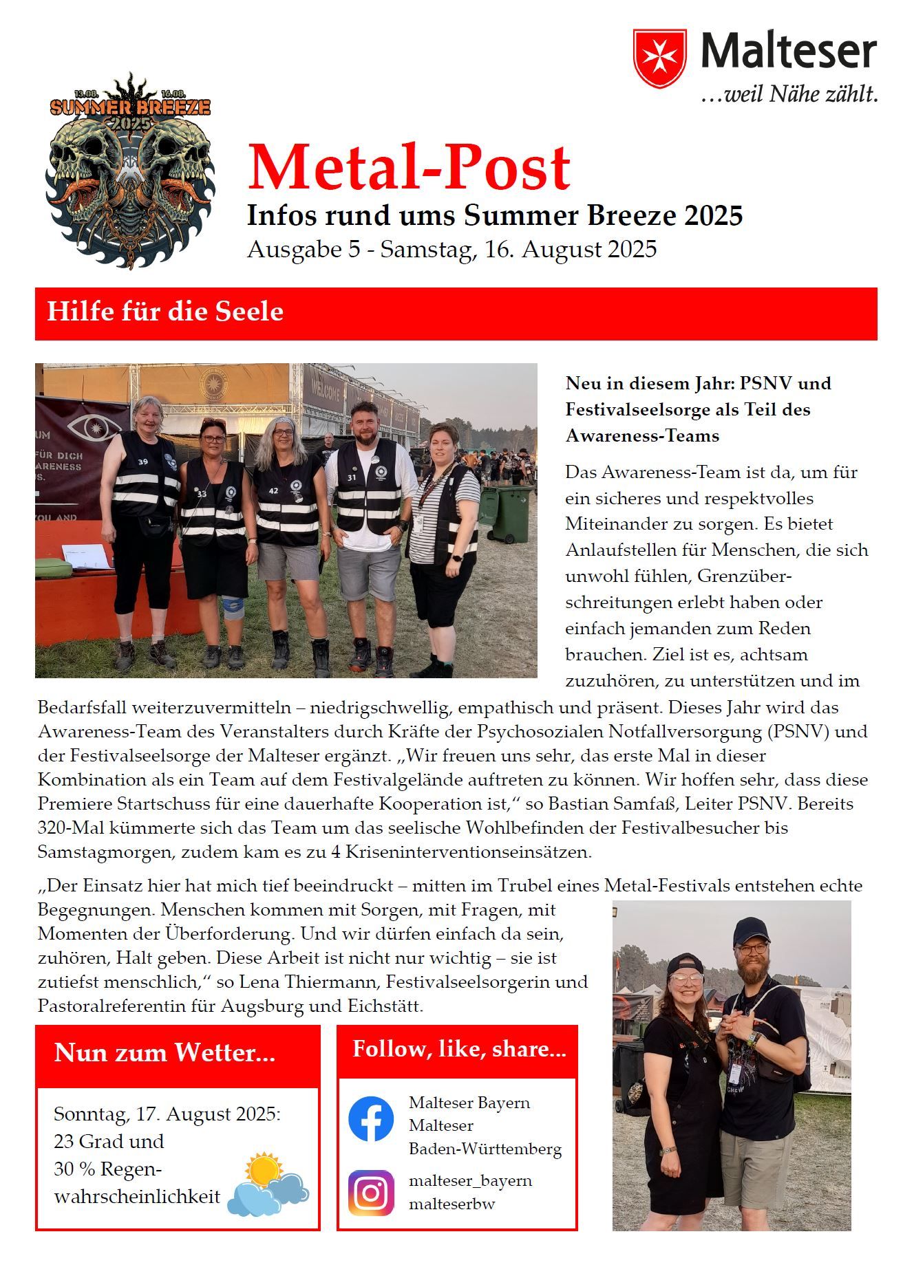 Malteser ziehen positives Resümee nach sechs Tagen Metal am Summer Breeze