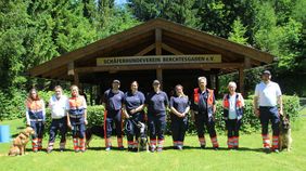 Für die Malteser Rettungshundestaffel Berchtesgadener Land nahmen Selina Busse mit Golden Retriever „Bailey“, Tamara Schönhals mit ihrem Deutschen Schäferhund „Nova“ und Sebastian Steinbacher mit seinem Altdeutschen Schäferhund „Peppa“ an der Prüfung teil. Außerdem absolvierten vier Teams der Malteser Augsburg den Eignungstest mit Erfolg.