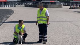 Berchtesgadener Land/München. Ungewöhnlicher Anblick in der Allianz Arena: Statt der 70.000 Fans des FC Bayern München, welche sonst die Ränge füllen, waren kürzlich lediglich die Mitglieder der Rettungshundestaffeln auf dem Gelände der Allianz Arena anwesend. Die Stadionverantwortlichen hatten das Gelände auf Anfrage der Malteser Dachau ein Wochenende lang für die Trainingsarbeit zur Verfügung gestellt. Fünf Mensch-Hund-Teams der im Aufbau befindlichen Rettungshundestaffel der Malteser Berchtesgadener Land sowie weitere 16 Teams der Schnell-Einsatz-Gruppe Rettungshunde der Malteser Dachau und der Mantrail Academie Austria übten in Kleingruppen und mit Abstand, was bei dem großen Gelände kein Problem darstellte. Den „heiligen“ Rasen durften sie allerdings nicht betreten, um Schäden durch tierische Hinterlassenschaften auszuschließen.