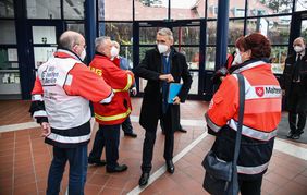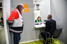 Der BBK-Präsident erkundigte sich vor Ort über den klar struktierierten Ablauf der Impfprozedur und durchlief als Test-Impfling selber die einzelnen Stationen. In der Messe Berlin haben die Malteser innerhalb weniger Wochen das Impfzentrum realisiert.
