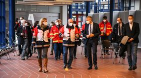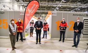 Berlin. Der Präsident des Bundesamtes für Bevölkerungsschutz und Katastrophenhilfe (BBK) Armin Schuster hat sich am Mittwoch ein persönliches Bild von der Einsatzbereitschaft des von den Maltesern betriebenen Impfzentrums in der Messehalle 21 unterm Funkturm gemacht. Ausdrücklich lobte er die gute Zusammenarbeit der Berliner Hilfsorganisationen Malteser Hilfsdienst (MHD), Arbeiter-Samariter-Bund (ASB), Deutsche Lebens-Rettungs-Gesellschaft (DLRG), Johanniter-Unfall-Hilfe (JUH), die die sechs Impfzentren in der Hauptstadt in den kommenden Monaten unter Federführung des Deutschen Roten Kreuzes (DRK) betreiben.