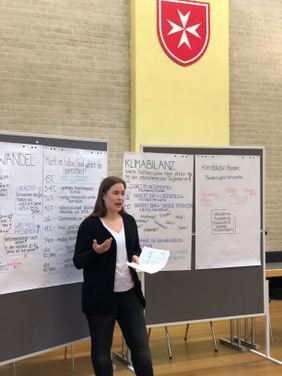 Spannende Erkenntnisse brachte für alle Teilnehmenden die Beschäftigung mit der Klimabilanz der Malteser bzw. konkret der Frage, welche Treibhausgasemissionen jährlich bei unternehmerischen Tätigkeiten anfallen. Den Löwenanteil als CO2-Treiber stellen vor allem Treibstoffe bei Fahrten zum Arbeitsplatz oder während der Arbeit sowie Dienstreisen dar. Papier, Strom und Abfall hingegen haben verglichen mit diesen Klima-Killern einen niedrigeren Anteil. Dennoch könne es Sinn machen, auch bei diesen Punkten umweltbewusst zu handeln, machten die Referentinnen des Workshops deutlich. Müll konsequent trennen, mit Thermostaten effektiver heizen, mit Bewegungsmeldern Stromverbrauch reduzieren und Papier sparen durch beidseitiges Bedrucken – auch kleine, schnell umzusetzende Maßnahmen schaffen das notwendige Bewusstsein, im Alltag das große Ganze – eine gesunde Umwelt – beim eigenen Handeln vor Augen zu haben. Auch deshalb verständigten sich die Workshop-Teilnehmenden darauf, dass man bei allen künftigen Veranstaltungen der Berliner Malteser auf vegetarische Verpflegung setzen will, um den klimaschädlichen Fleischkonsum zu reduzieren.