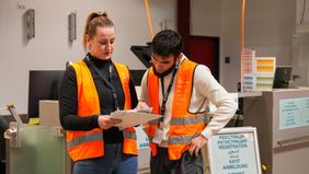 In der Flüchtlingseinrichtung arbeiten rund 150 Sprachmittlerinnen und Sprachmittler der Johanniter-Unfall-Hilfe. Die Mitarbeitenden sprechen 26 Sprachen, vor allem Russisch, Ukrainisch, Arabisch, Türkisch, Farsi und Englisch. Ein besonderes Beratungsangebot leisten die Zentralen Sozialen Dienste. Ein Team aus Sozialarbeitern, Sozialpädagogen, Psychologen und Juristen steht rund um die Uhr für Beratungsgespräche, Krisenintervention und psychosoziale Unterstützung zur Verfügung. Allein in den letzten sechs Monaten haben die Fachkräfte der Johanniter rund 18.000 Beratungen durchgeführt – im Durchschnitt 100 Gespräche pro Tag. Ihr Einsatz hilft Geflüchteten, sich in Deutschland zurechtzufinden und wichtige erste Schritte zu gehen.