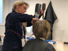 - „HairBerlin“, ein Friseursalon im Ankunftszentrum-Tegel. Die Haarschnitte in dem kleinen Container auf dem Rollfeld sind kostenlos, denn bei diesem Angebot geht es um viel mehr als nur um eine neue Frisur: Das Wohlbefinden der Geflüchteten steht im Fokus.