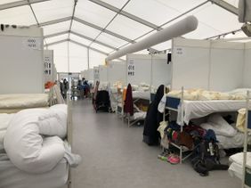 Waren die ersten Monate nach dem Kriegsausbruch darauf ausgerichtet, dass die Menschen im Ankunftszentrum maximal zwei bis drei Tage blieben, verweilen die Geflüchteten dort inzwischen mehrere Wochen. „Wir begleiten die Menschen hier im Ankunftszentrum Tegel jetzt für deutlich längere Zeiträume. Das bringt zusätzliche Herausforderungen für uns als betreuende Hilfsorganisation mit sich. Die Menschen sind hier über Wochen ohne Aktivitäten, in Ungewissheit über die Zukunft und vor allem ohne Privatsphäre. Mit Angeboten und Informationen zur Freizeitgestaltung versuchen wir Lagerkoller und Spannungen untereinander vorzubeugen und abzubauen“, sagt Maximilian Devantier, Leiter des Malteserteams in Berlin-Tegel.