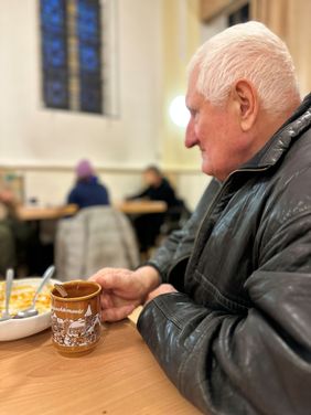 Schon beim Eintreten steigt der Duft von Eintopf in die Nase, Stimmen erfüllen den Raum, dazwischen gelegentlich ein lautes Lachen, Geschirrklappern. Über 60 Menschen haben am vergangenen Freitag, 6. Februar, hier wieder einen Platz gefunden: zum Durchatmen, Aufwärmen und vor allem für eine stärkende Mahlzeit. Möglich wird das durch Ehrenamtliche der St. Richard Gemeinde und Freiwillige des Malteser Integrationsdienstes aus Neukölln – ein eingespieltes Team, das Woche für Woche zeigt, was gelebte Nächstenliebe bedeutet.