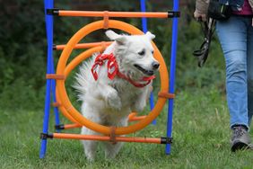 Während sich die Hunde in einem Parcours auf dem Gelände des Jugendfreizeitzentrums MANNA Westend austobten, stärkten sich ihre Frauchen und Herrchen am Kuchenbuffet. Einer der Gäste hatte sogar eine Torte mit Malteser-Kreuz für das Fest des Besuchshundedienstes gebacken.