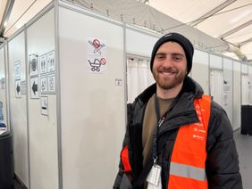 „Ich arbeite seit Oktober 2023 in Tegel. Als Schichtleiter bin ich für eine der Leichtbauhallen in Tegel zuständig. Ein Komplex besteht aus vier Hallen, zwei zum Schlafen, einer Halle für den Aufenthalt, eine für die Sanitäranlagen. Natürlich sind die Umstände hier für alle Geflüchteten herausfordernd. Aber sie haben hier einen sicheren Ort ohne Krieg. In meiner Zeit in Tegel habe ich viel gelernt. Man muss in schwierigen Situationen sofort entscheiden. Als Mitarbeiter kann ich nicht alle Probleme lösen, aber ich helfe, wo ich kann. Oft sind es die kleinen Dinge, die etwas bewirken, etwa wenn ein Gast sein Bett tauschen möchte oder wir jemanden zur Erste-Hilfe-Station begleiten können. Die Menschen freuen sich darüber und das freut mich. Was in Tegel für mich auch besonders ist, ist unser Team. Die Arbeitskollegen sind perfekt. Ich kenne viele Leute aus vielen Bereichen. Wir sind sehr divers. Die Vielfalt ist ein großer Bonus für mich.“