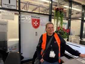 „Ich arbeite seit April 2021 für Malteser, zunächst in der Dokumentation im Impfzentrum Messe Berlin, später im Impf-Drive-In Lichtenberg. Dort habe ich auch als Sprachmittlerin geholfen und auf Russisch und Englisch für die Impfgäste übersetzt. Seit Juni 2022 arbeite ich als Sprachmittlerin für die Malteser in Tegel und freue mich immer, wenn ich den Geflüchteten weiterhelfen kann. „Welche Dokumente benötige ich, um Sozialleistungen zu beantragen? Was muss ich tun, um an eine Wohnung zu kommen? Welche Freizeitangebote gibt es in Tegel? Mit all diesen Fragen kommen die Bewohnerinnen und Bewohner aus Tegel an den „zentralen Infopoint 1“. Geflüchtete und Mitarbeitende anderer Gewerke, die bei mir und meinen Kollegen nach Unterstützung fragen, werden von uns informiert und an die richtige Stelle weitergeschickt.“