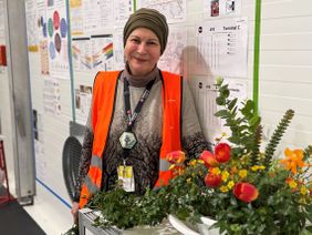 „Ich selber bin vor sieben Jahren aus Syrien nach Deutschland geflüchtet. In Syrien habe ich Agraringenieurwesen studiert und war später als Hochzeitsplanerin in Saudi Arabien tätig. Deutschland hat uns Syrer aufgenommen und ein würdevolles Leben gegeben, dafür bin ich sehr dankbar. Die Malteser machen als Organisation eine großartige Arbeit, deswegen möchte ich jetzt anderen helfen. Ich arbeite seit zwei Jahren in Tegel im Infoteam der Malteser. Wann immer ich kann, bringe ich von meinem Balkon zu Hause Blumen und Pflanzen mit nach Tegel. Die Blumen und Gestecke verteile ich hier im ganzen Ankunftszentrum. Die Blumen sollen sie erfreuen und die Stimmung hier verbessern. Die Bewohnerinnen und Bewohner in Tegel kommen aus Kriegsländern. Sie sollen etwas Schönes haben, an dem sie sich erfreuen.“
