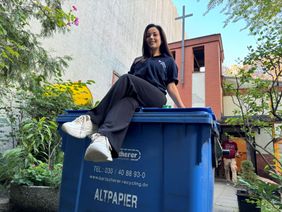 Zu den Teilnehmerinnen des Workshops gehörte auch die 66-jährige Ukrainerin Kateryna, die vor zwei Jahren vor dem Krieg aus der Ukraine nach Berlin fliehen musste. „Im Kriegsgebiet hat Müll nochmal eine ganz andere Bedeutung, denn durch die Angriffe zerbersten Fensterscheiben, Glassplitter fliegen umher“, sagt die Architektin im Ruhestand. In Deutschland angekommen musste sie erstmal lernen, was es mit der blauen, gelben, braunen und schwarzen Tonne auf sich hat. Mittlerweile kennt sie sich ganz gut aus, ist aber trotzdem beim Nachhaltigkeitstag dabei, um noch mehr zu lernen. „Umweltschutz lag mir schon immer am Herzen“, erklärt sie.